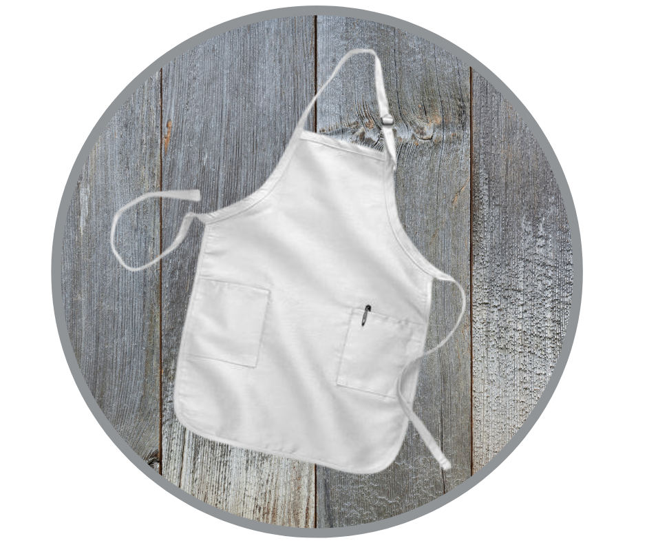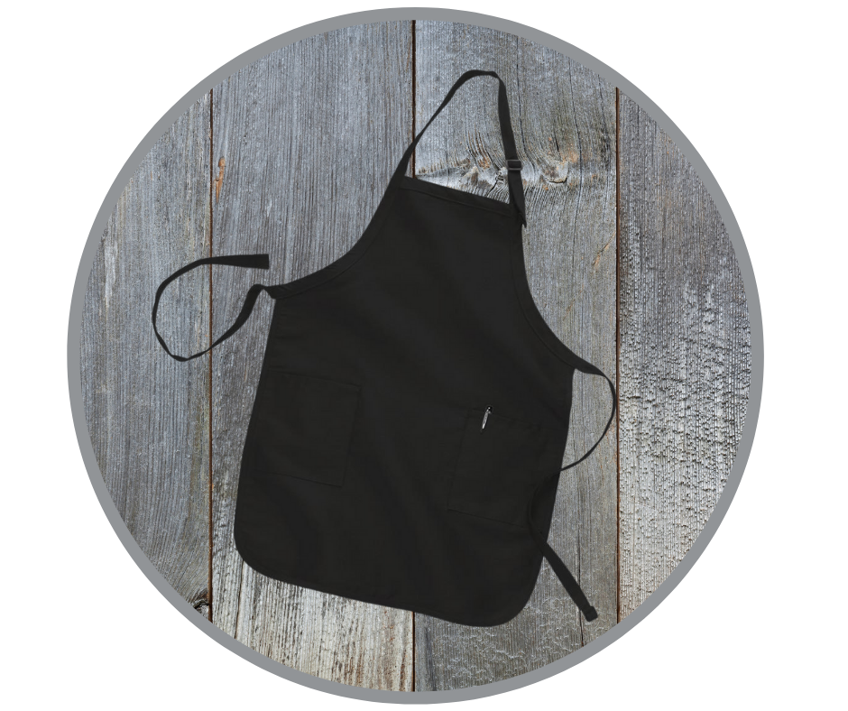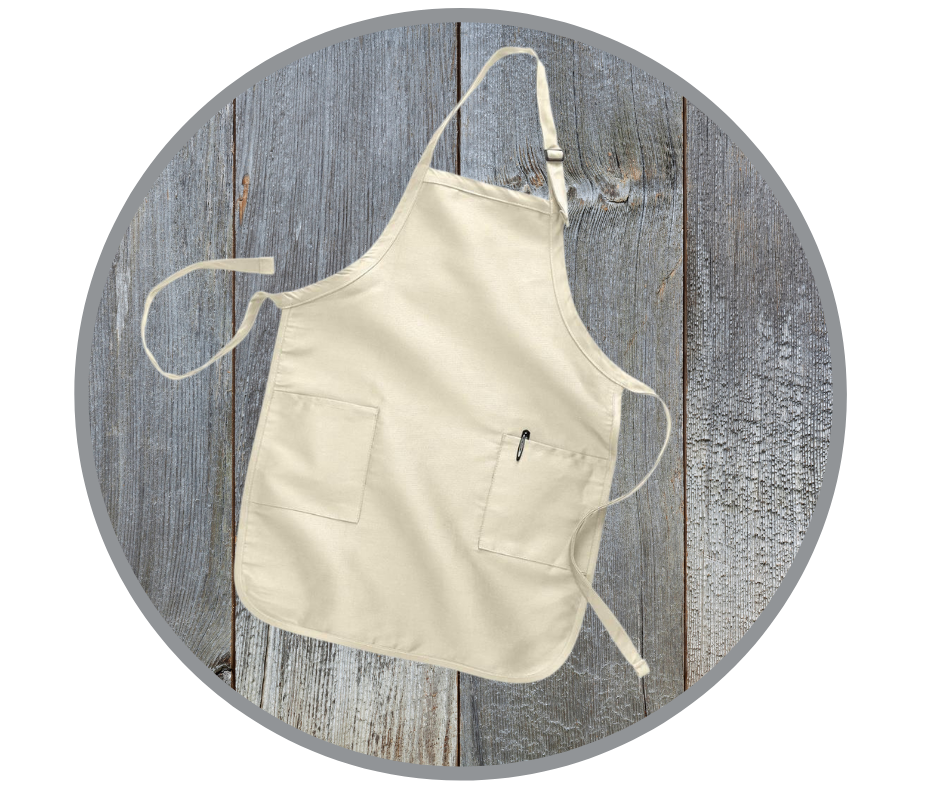 Durable and soft full-length Chef Apron will keep you looking clean and professional. Prewashed for shrinkage. These products are promotional and may possibly have some flaws, such a scratches, color differences or spots.