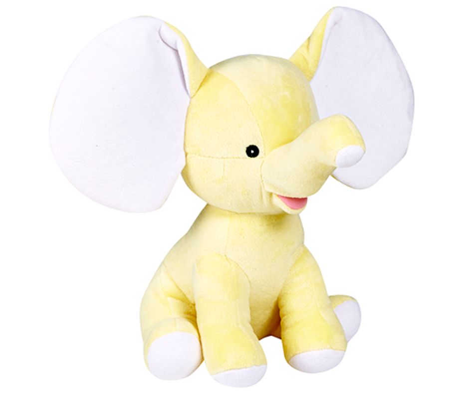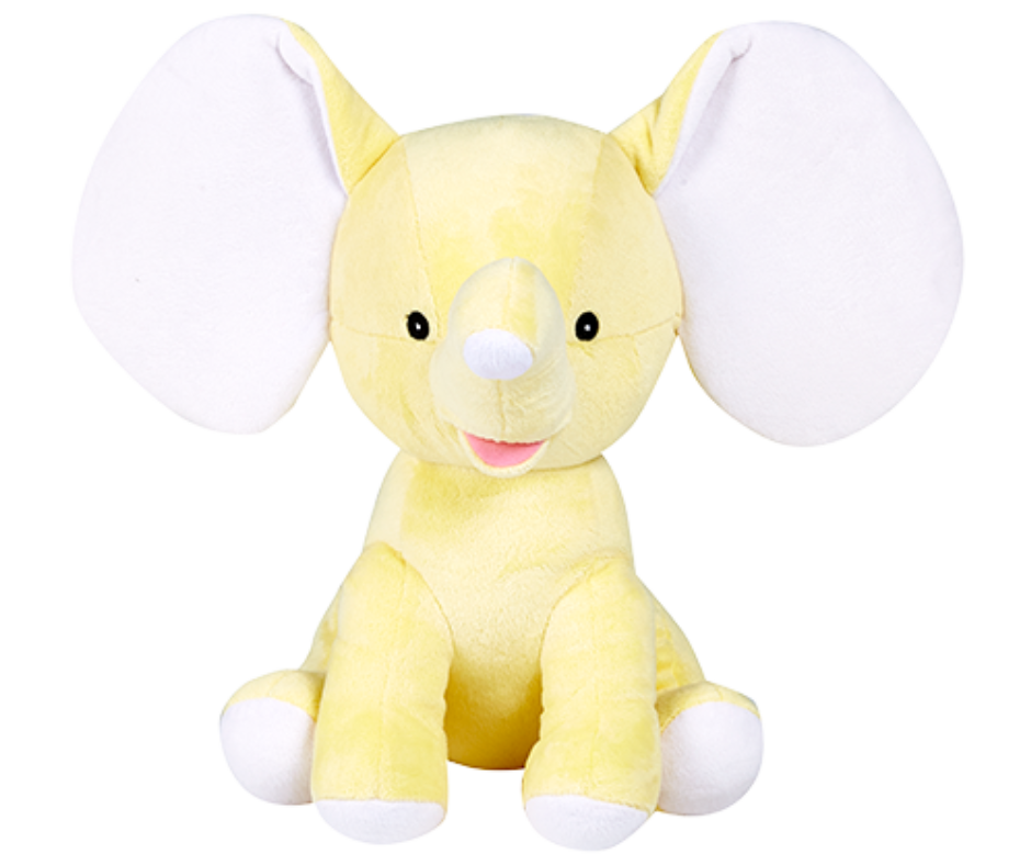 Our plush Dumbles have big ears, making them perfect for personalization. You can get one or both ears personalized. Dumbles do not have a zippered opening.